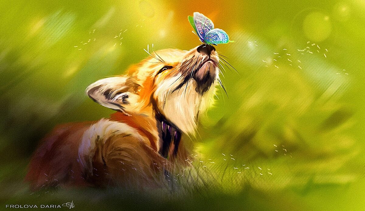 Al bute il binocul e al tache a cori daûr: cheste volte al à di fâi capî che e à di finîle. Al rive a cjapâle, ma e je fuarte e svelte, lu bute par tiere e a tachin a ribaltâsi, fin che lui, cun cetante fature al rive a tignîle. In chel, une pavee colorade si poie intai siei cjavei.