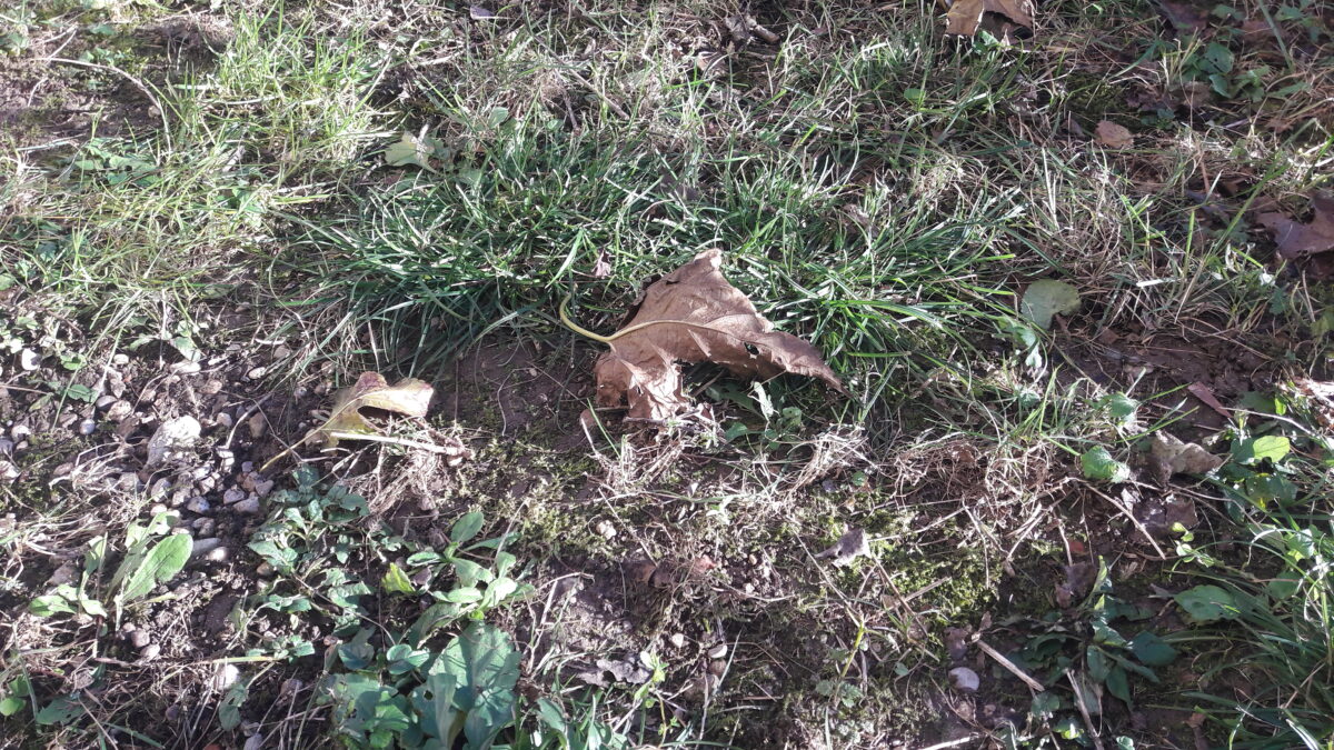 Cuntun sgrisul si poià sul prât. Fîi di jerbe verts e zâi, muscli sot di jê. E veve un pês cumò, une consistence. Incjocade dal podê tocjâ, cjareçâ l’umit, il bagnât.