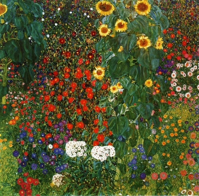 Zardin di campagne cun gjirasoi, G. Klimt, 1906, Di campagne, di zardin, Di ducj i colôrs, e formis, e sintiments, di cjalâ, piturâ, semenâ, mangjâ, robâ, regalâ… FLÔRS O rosis, se si vûl, stant che chês cu lis spinis par furlan ju clamìn sclapons. Flôrs parcè cun lôr e tuche la Vierte parcè che