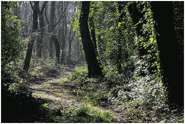 Po ben, incuriosît di cheste storie, une dì o rivi a Luvignà di Sore e parcade la machine fûr dal paîs, o cîr olmis di chest troi. Dut câs, su la cjarte Tabacco che o ai in man, si viôt par un toc un troi che daspò al si çonce cence puartâ in nissun puest. La cjarte e segne che un chilometri e mieç plui in là, tal mieç di une val strete e ripide e je la indicazion “Ruderi”. Forsit o soi tal just e o voi indenant. Mi inacuarç subit che il bosc al è tornât a cjapâ possès dal troi e lu à scuasit scancelât. Al è simpri plui dificil ricognossilu e a un ciert pont i lu piert. O cîr di orientâmi cun bussule e GPS e o voi indenant cun fadie. Po dopo o rivi intal puest che al à sdrumât ju e di chest mi inacuarç pes plantis diferentis che a son cressudis parsore.