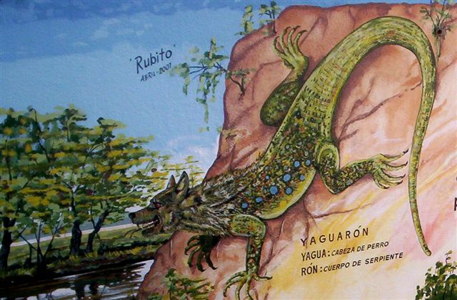 Al va dâur dal flum, a plene gnot, de corint a ondis neris, e je platade la bestie… Cjâf di jaguâr, cuarp di sarpint, e cuatri gjambis cun sgrifis lungjis. Al è scuindût il “Yaguarón”, in spiete dal om cun pas inciert. Al à sgjavât la tiere sot dal sdrup in spiete di cui che