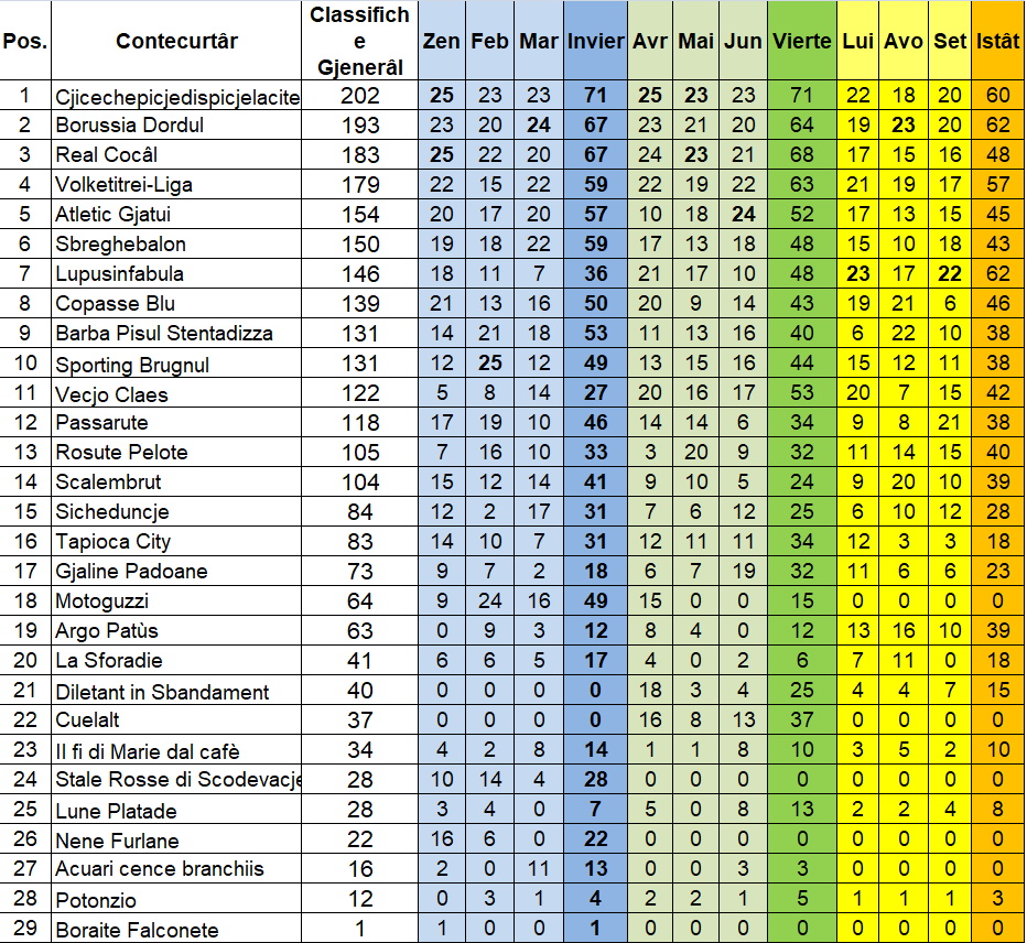 O sin rivâts a trê cuarts de gare e insome… e je propite ore di une biele classifiche gjenerâl e di dutis chês altris. E si ben che aromai ciertis posizions si tegnin cu lis ongulis, ancje chest mês no son mancjadis lis sorpresis. Un podìn spiâ, tant par scomençâ, che i trê zurâts si